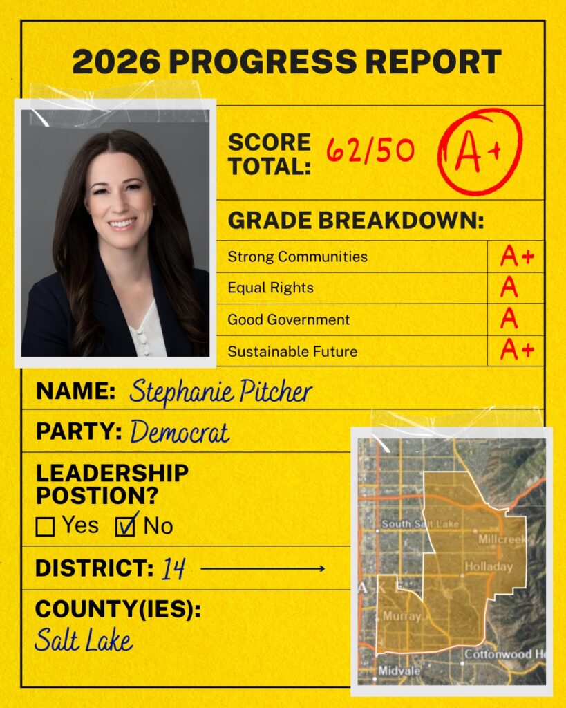 Each year, Alliance for a Better Utah releases their end-of-session progress reports. I’m proud to continue a record of results and progress. You can view the full report here.