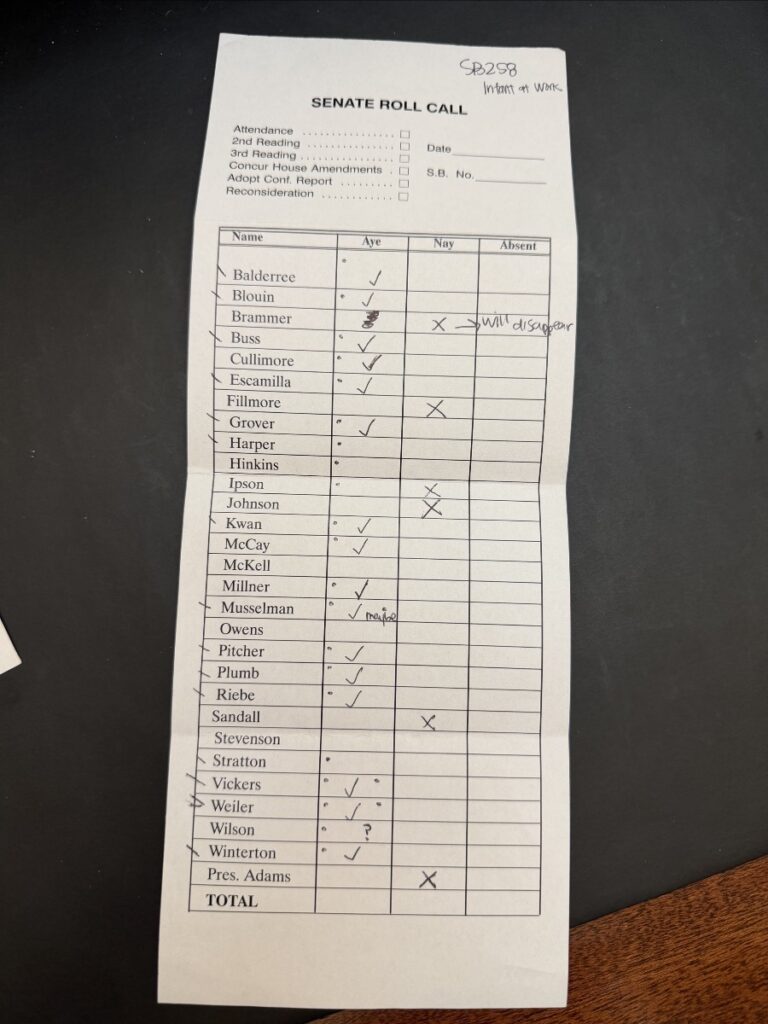 👶 SB258 – Infant at Work Amendments: Expands the Infant at Work Pilot Program, which I initially passed in 2020 and which was piloted by the Utah Department of Health. The program allows employees to bring their newborn child with them to work for the first six months or until the child becomes mobile. It’s an innovate solution to address childcare needs and was very well received in the Dept. of Health. SB258 would expand this program to all state agencies in the executive branch.